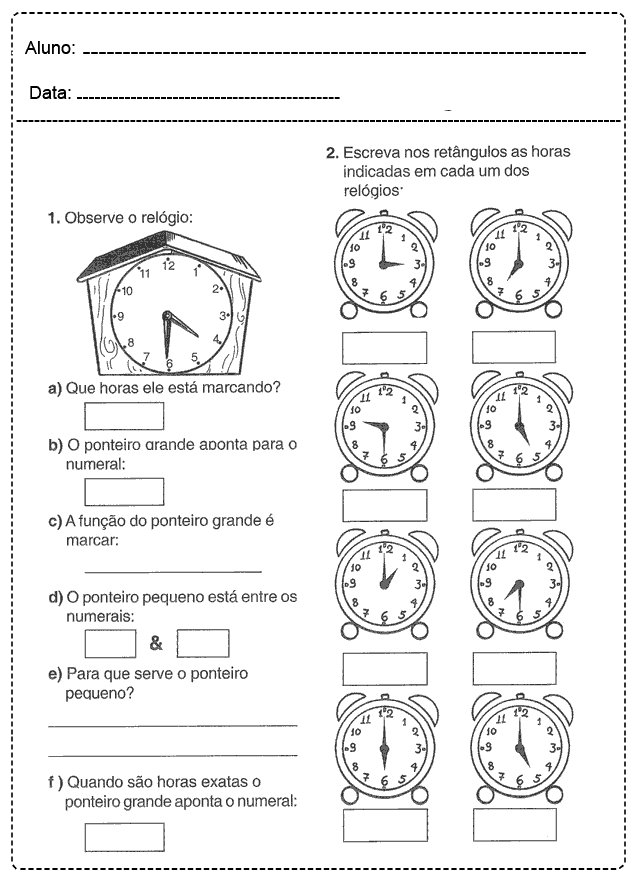 . Atividade medida de Tempo Relógio de Parede com Molde Atividades com relógio para imprimir - Ensinoja As Horas do dia