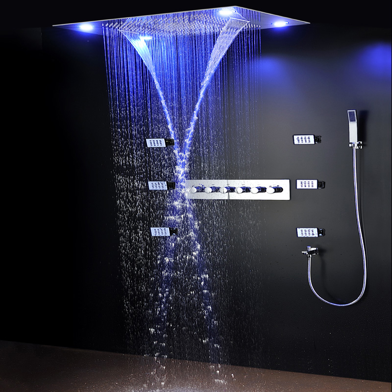 Shower Sale Fontana Mugla 22 Led Thermostatic Waterfall Rain Shower Head With Massage Body Sprays And Hand Shower Fontanashowers Shower Systems Shower Heads Rain Shower System