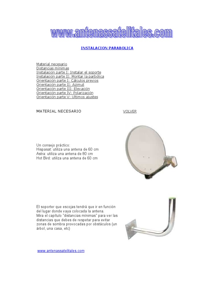 . Satélite - Manual para instalarse una antena parabólica d Antenas Parabólicas Televisión por satélite. Instalación de Antenas Parabólicas