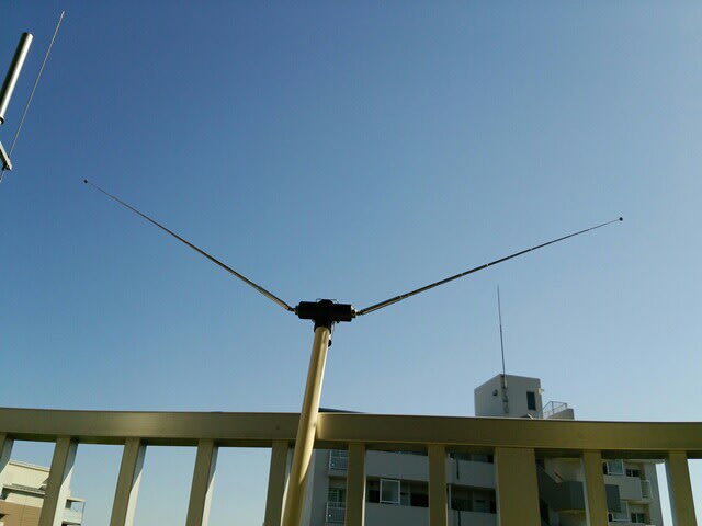 Ganchan/ヨコハマTT14_with_ヨコハマYY14 en Twitter: "二階のベランダからアンテナ立ちました。素人作業のため強風で倒れないか心配ですが。。😅 #アマチュア無線… "